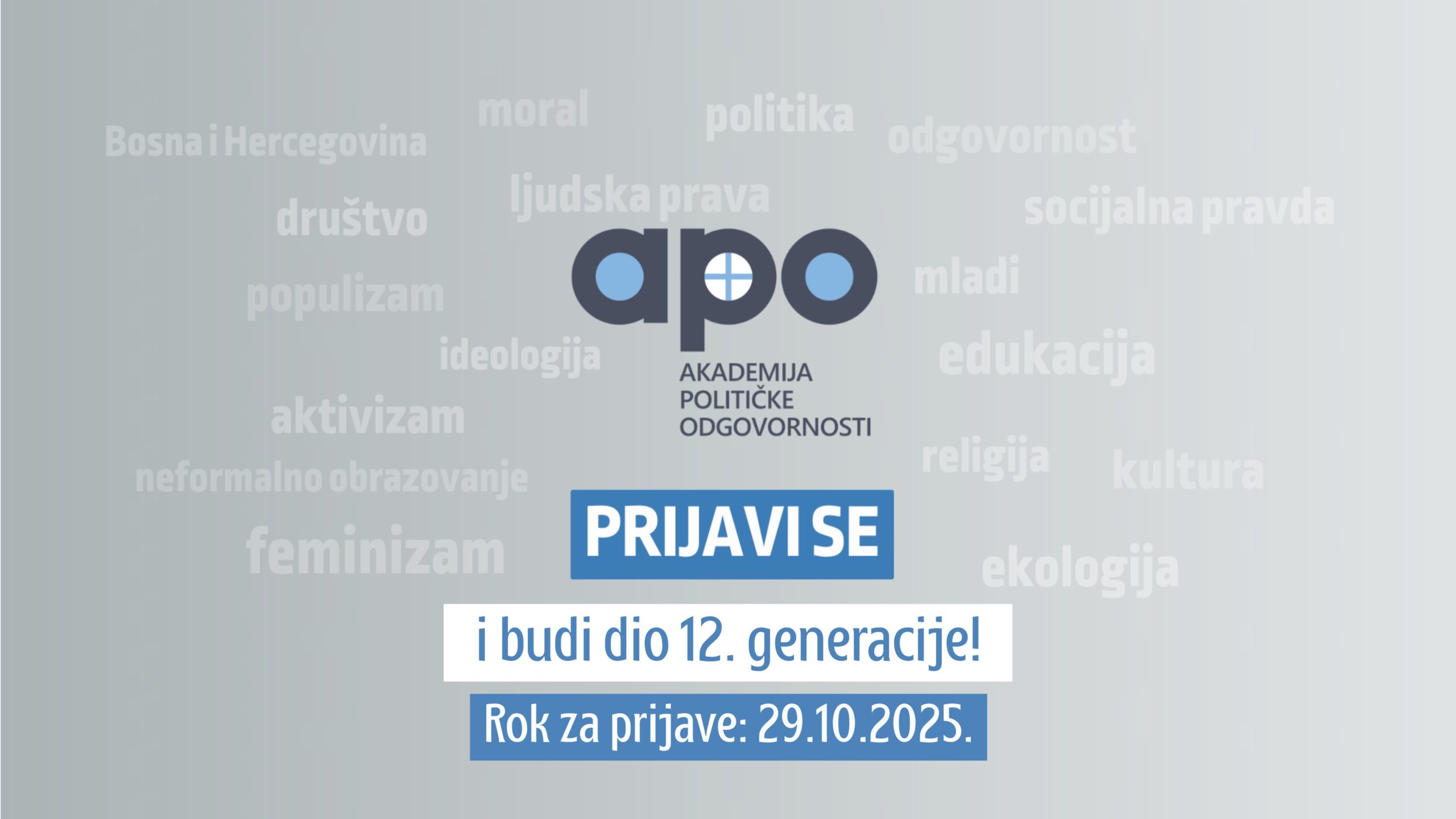 Fondacija Boris Divković (BDF) organizira dvanaestu Akademiju Političke Odgovornosti (APO), koja okuplja mlade aktiviste/ice iz Bosne i Hercegovine (18 do 35 godina) koji dolaze iz političkih stranaka, nevladinih organizacija, te studente/ice različitih usmjerenja, mlade novinare/ke koji imaju ambiciju da nauče više o osnovama političke kulture i pismenosti, odnosu religije, etike, morala u društvenom i političkom životu, odgovornom novinarstvu, ljudskim pravima, rodnoj ravnopravnosti i mnogim drugim temama koje su nužne za odgovorniju politiku ali su nažalost nedovoljno zastupljene u našem društvu i javnom diskursu.